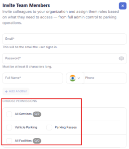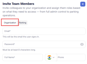 Note : Organization level admins can also add parking level roles. Mostly, it’s used when parking level admin needs to be assigned for a particular parking.