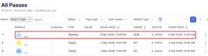 Each pass type defines how long access is valid, not how long a vehicle stays per visit.