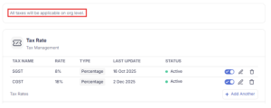 - Setting up Org-Level Taxes