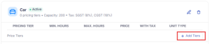Once the vehicle type details are saved, you can define pricing tiers for that vehicle.